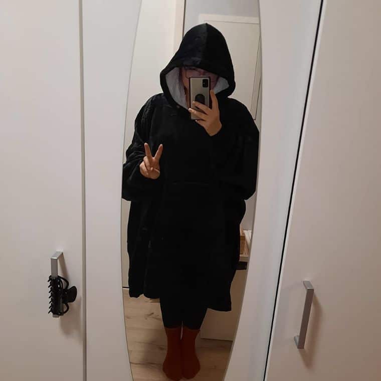 “L’ho regalata alla mia ragazza per San Valentino e devo dire che è fantastica, l’ha apprezzata moltissimo e per le fredde giornate invernali non c’è nulla di meglio da indossare in casa. Assolutamente consigliata! Misura più che sufficiente per qualunque tipo di corporatura, colori per tutti i gusti, e pratico cappuccio.”