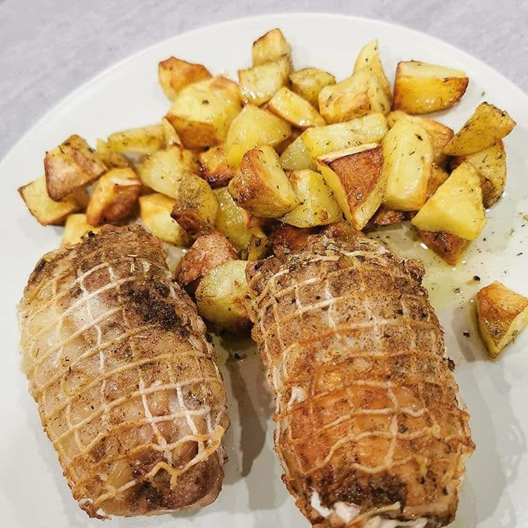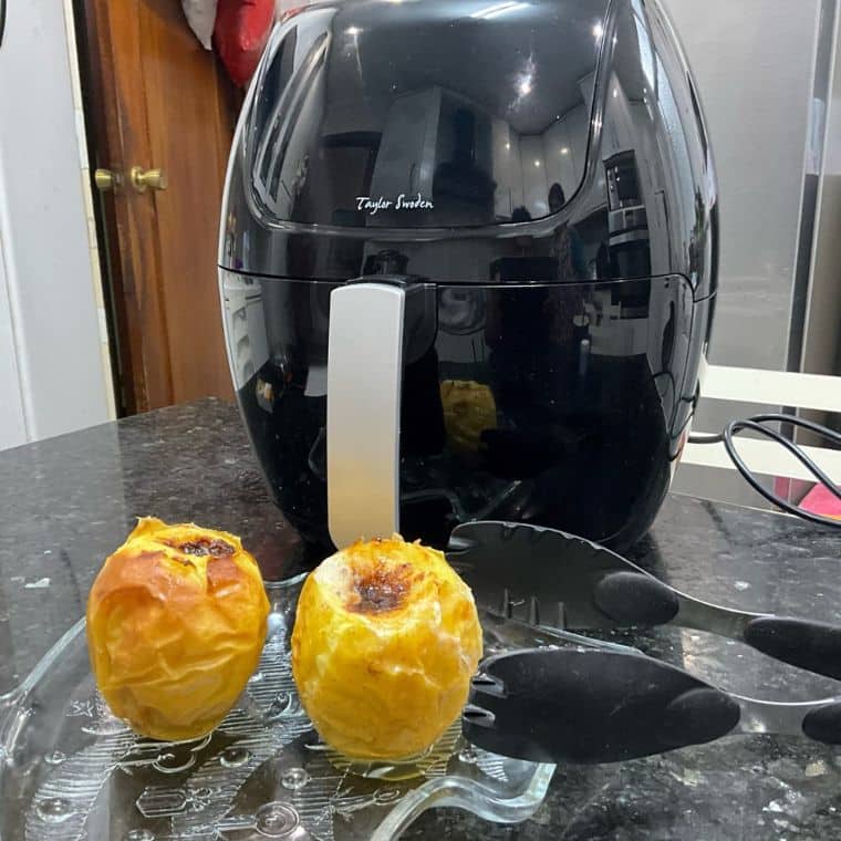 “Hasta el momento hemos hecho unas patatas muy ricas y estas manzanas (como al horno), Hoy le vamos a dar caña al pollo. Lo mejor es que es limpio y a la larga con la falta de aceite lo agradecemos tanto fisica como en el bolsillo.