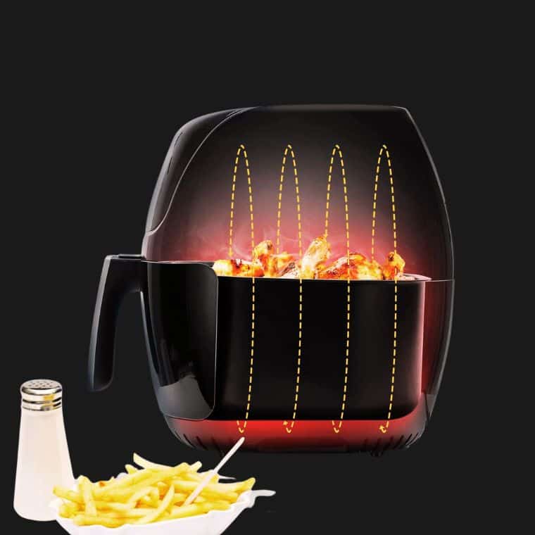 Gracias a la tecnología ciclónica y a los elementos calefactores dobles, el aire se calienta y circula rápidamente, envolviendo los alimentos con aire a alta temperatura que simula el efecto del aceite.