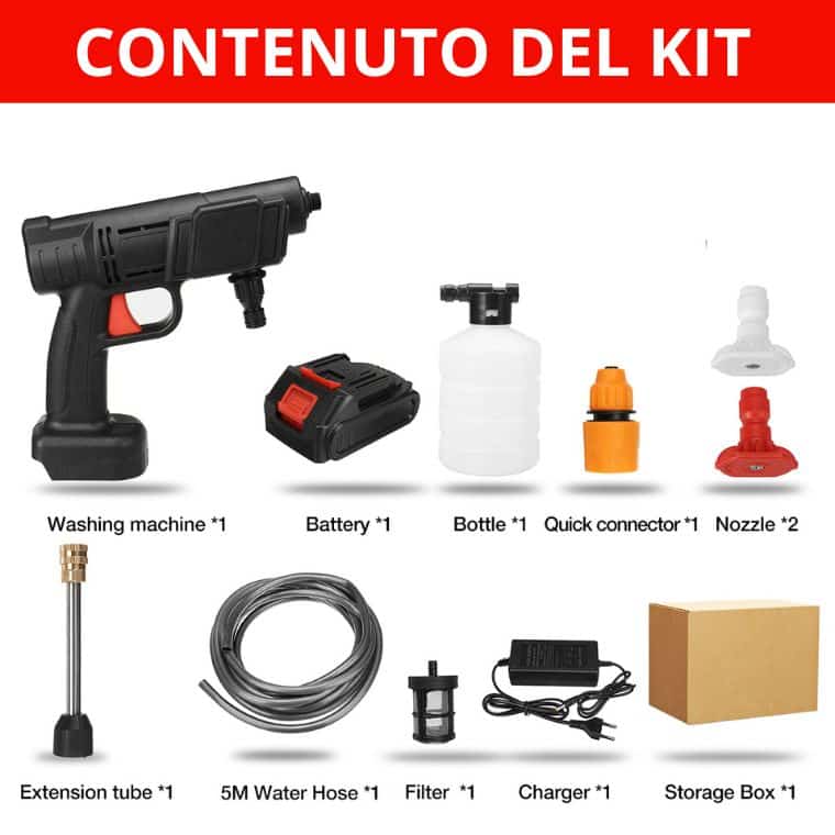 “Arrivato con un giorno di ritardo ma nient’altro da dire, funziona alla perfezione, basta inserire il tubo in una fonte d’acqua o attaccarlo a un rubinetto, è anche molto forte il getto e lava bene, valigetta con tutti gli accessori inclusi”