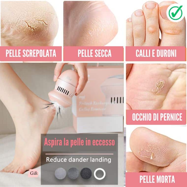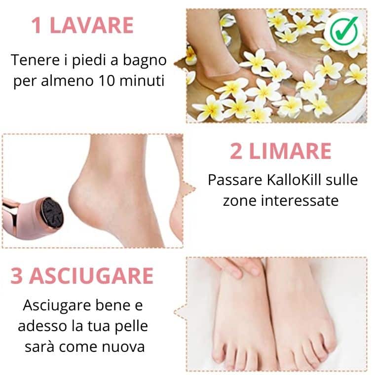 KalloKill© il dispositivo elettrico che rimuove in maniera Efficace e Permanente Calli, Duroni. Occhi di Pernice alla Radice ed elimina la Pelle secca in soli 10 minuti direttamente a casa.